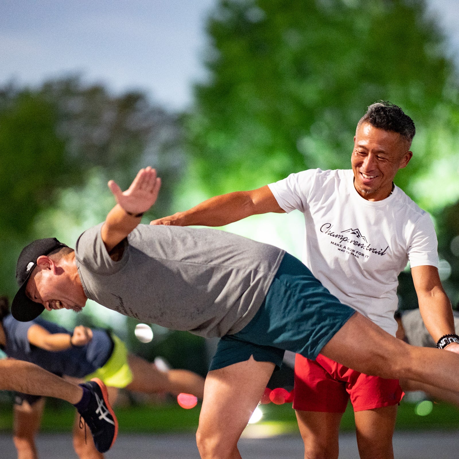 ちゃんぷ。練ではランニングスキルのベースアップはもちろん、レースへのコンディショニングなどトータルでサポートさせていただいおります。